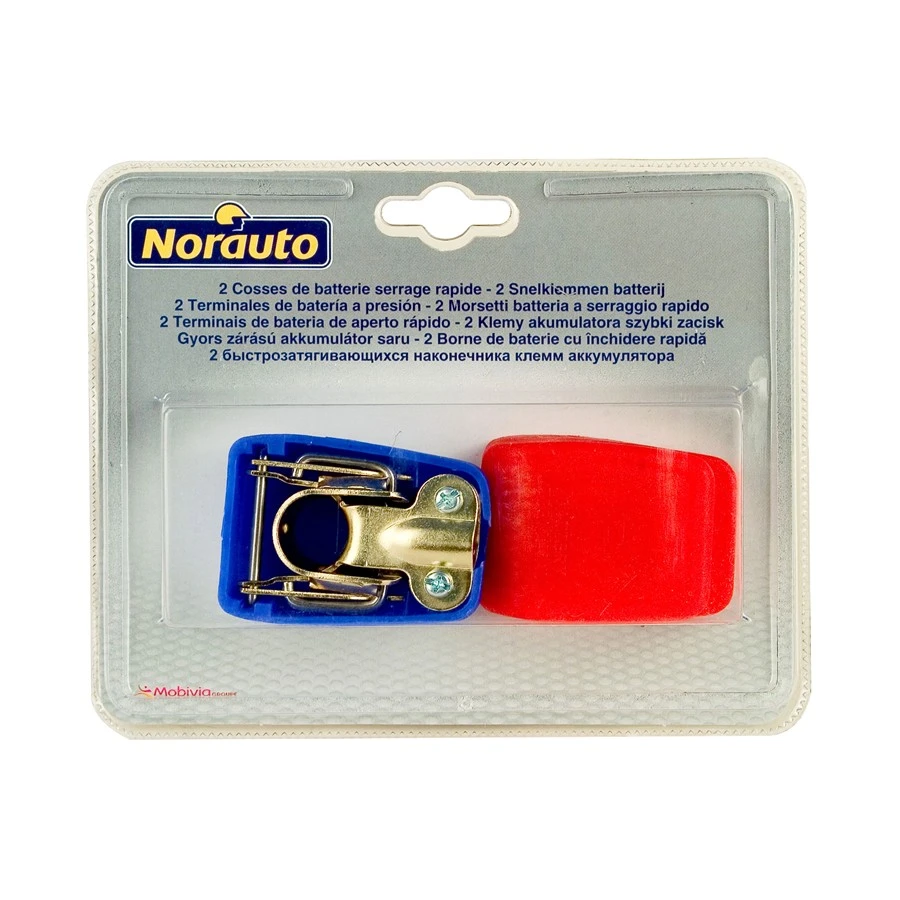 Die Batteriepolklemme mit Schnellverschluss von Norauto besteht aus zwei verschiedenen Teilen, einen blauen Teil für den Minuspol und einem roten für den Pluspol. Durch die werkzeugfreie Montage ist diese Klemme schnell angebracht und auch schnell wieder entfernt.