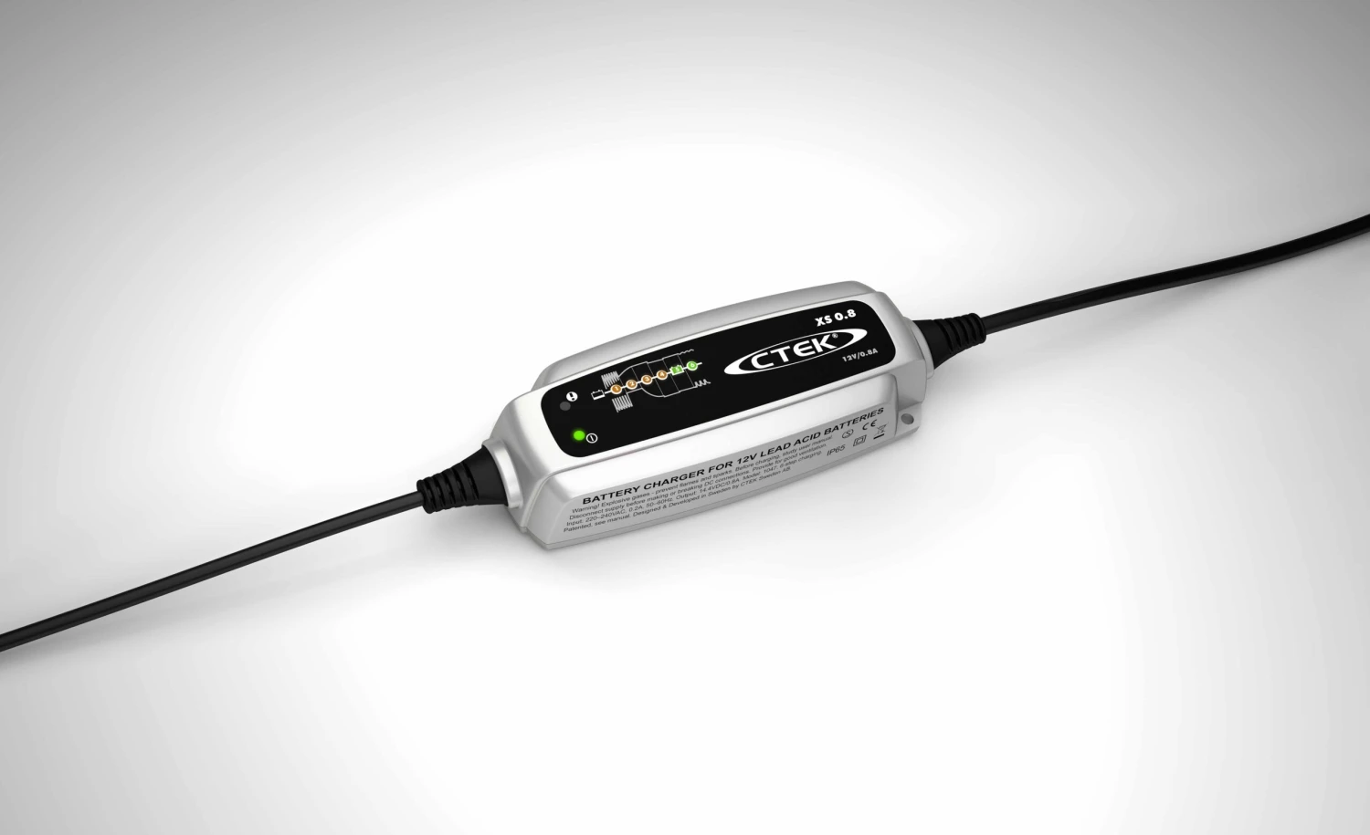 Das XS 0.8 ist das kleinste 12V-Ladegerät von CTEK. Es ist mit modernster Technologie ausgerüstet und eignet sich perfekt für das Laden kleinerer 12V-Batterien, wie sie z. B. in Motorrädern, Jetskis, Quads und Rasenmähern zu finden sind. Außerdem eignet es sich für die Wartungsladung von Batterien „normaler“ Größe, wie z. B. Autobatterien. Das einzigartige Display ermöglicht dem Benutzer, den gesamten Ladungsprozess zu verfolgen. Das XS 0.8 ist ein kompaktes, vollautomatisches 6-Stufen-Ladegerät für 12V-Batterien von 1.2 – 32Ah sowie für die Wartungsladung von bis zu 100Ah. Das XS 0.8 hat die Schutzart IP 65 (geschützt gegen Staub und Spritzwasser), liefert 0,8A und schützt die Fahrzeugelektronik. Es ist funkengeschützt, verpolungs- und kurzschlusssicher.