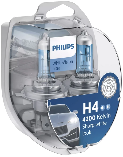 Die Philips WhiteVision ultra Autolampen verleihen Ihren Scheinwerfern eine intensive, weiße Halogen – Optik und sorgen damit für ein erstklassiges Fahrerlebnis bei Dunkelheit. Mit bis zu 4200 Kelvin strahlend weißem Licht fahren Sie mit hoher Sichtbarkeit über die dunkeln Straßen und werten Ihr Fahrzeug stylisch auf.