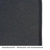 Hochwertiger getufteter Velour (100% Polyamid) gibt dem Fahrzeugboden einen edlen Charakter. Die weiche Oberfläche bietet nicht nur Schutz des Fahrzeugbodens, sondern auch hochwertigen Komfort im Fussraum. Die Dichte des Velours ist auch ohne zusätzliche Verstärkung im Pedalbereich verschleissfest.