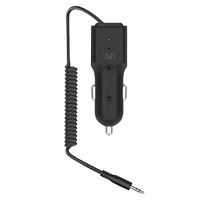 Das Gerät verfügt sowohl über einen Anschluss für die Zigarettenanzünderbuchse um Fahrzeug, um es mit Power zu versorgen, als auch über einen AUX-Anschluss mit einem 30cm langen Kabel (ausziehbar bis 1 m) . Durch die zwei USB-Ports können mit dem entsprechenden Kabel zwei Geräte angeschlossen werden.